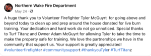 Wake Forest landscaping company TurfTitanz helps local fire department clear land in preparation for live burning training.