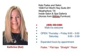 Licensed Beautician Kathrine provides hair & color services for men and women, including new hair extensions & adjustments, cuts, shaves, perms, color, highlights and ear & nose waxing. Men's specialty services include hot lather and towels.