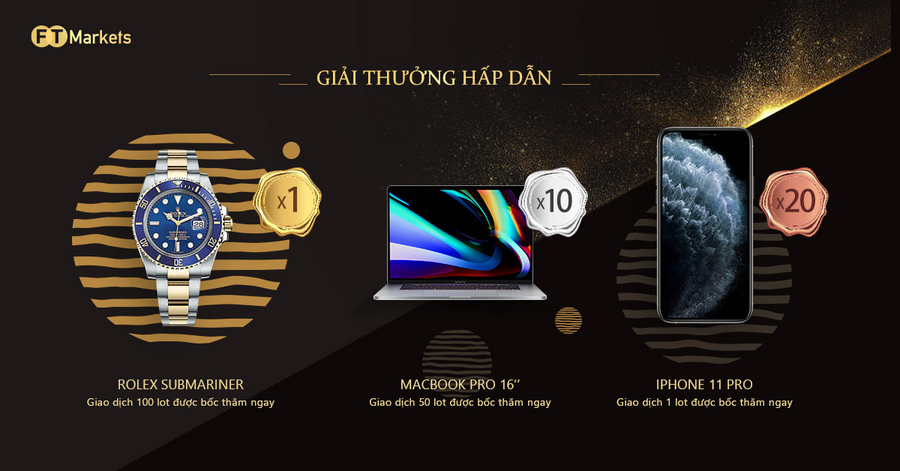 Besides this, a number of appealing prizes is waiting for you. 20 of those who have traded with 1 lot or more in total on FT Markets will win an iPhone11Pro; 10 of those who have traded with 50 lots or more in total will be awarded a MacBook; 1 of tthose who have traded with 100 lots or more will gain a luxury watch from Rolex.