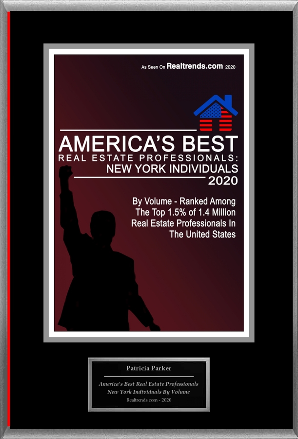 Following the publication of Patricia Parker's selection for Realtrends.com's 2020 America's Best Real Estate Professionals: New York Individuals list, American Registry seconded the honor and added Patricia Parker to the "Registry of Business Excellence™". An exclusive recognition plaque, shown here, has been designed to commemorate this honor.