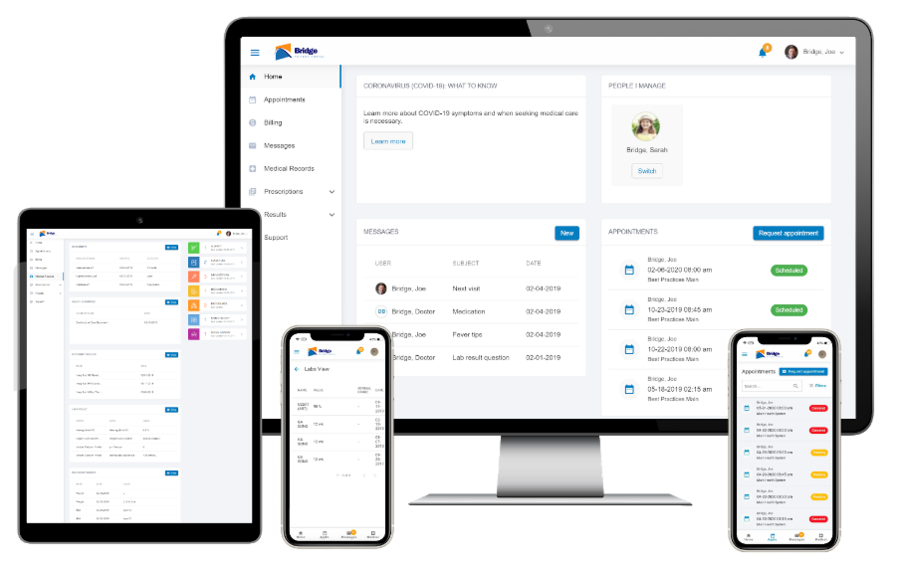 Bridge Patient Portal is an enterprise patient portal and engagement solution that empowers patients with self-service tools to manage their care better. The Bridge Patient Portal platform is client-branded and ideal for health organizations seeking to replace their existing EHR portals or connect to disparate EHR environments with a single, vendor-neutral patient portal platform available on desktop, iOS, and Android. Founded in 2012 and headquartered in Dallas, Texas, Bridge Patient Portal has installations in many of healthcare's leading clinics, hospitals, and health systems nationwide. For more information, visit https://www.bridgepatientportal.com/ or call 800-467-2321.