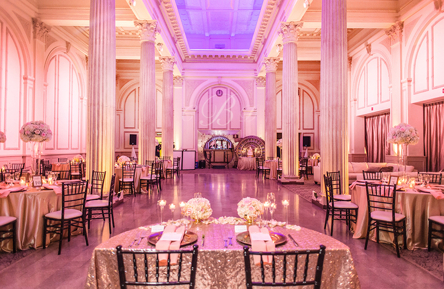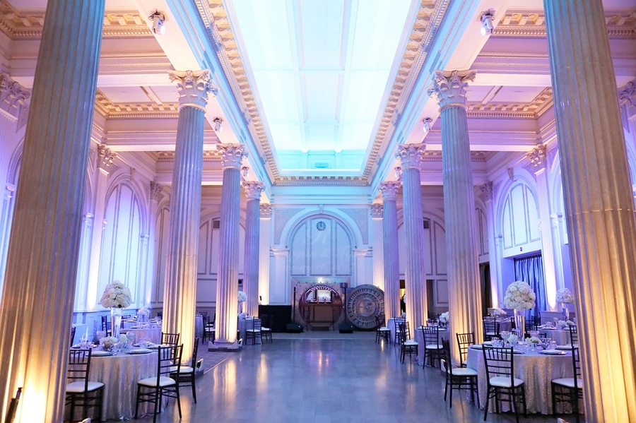 Located on the first floor of the six-story building at 24 Cathedral Place in St. Augustine, Florida, The Treasury on The Plaza originally opened in 1928 as The First National Bank of St. Augustine. After undergoing an extensive renovation in 2014, The Treasury is now exclusively an event venue, hosting over 150 weddings per year. The site's stunning architecture is a testament to turn-of-the-century grandeur and design. The Grande Ballroom, with its towering ceilings and ornate columns, accommodates up to 250 guests for ceremonies or seated banquets.