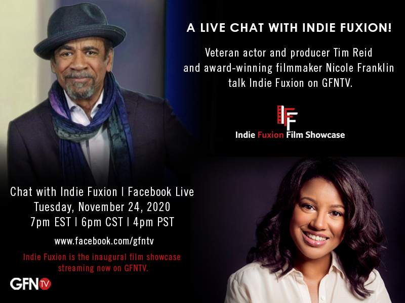 ST. LOUIS, MO, November 23, 2020 /24-7PressRelease/ -- On Tuesday, at 7pmEST November 24, 2020 veteran actor and producer Tim Reid and veteran indie filmmaker Nicole Franklin will share the screen for a "Chat with Indie Fuxion." Indie Fuxion is the inaugural showcase on the streaming service Global Fuxion Network Television (GFNTV). Franklin assembled a cutting-edge program, which includes the courageous work of women and non-binary directors she has met throughout her career. Films and directors hail from Canada, France, Germany, Guadeloupe, Nigeria, Taiwan, Uganda and the United States. Reid's career paved the way for pioneering projects mainstream studios have yet to match. Reid and Franklin are both new to a streaming network that celebrates diversity. The livestream event is destined to be an insider's chat on industry gamechangers and a roadmap to a life in production for emerging filmmakers.