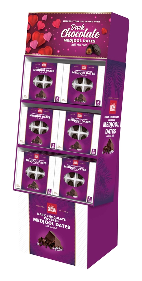 YUMA, AZ, December 08, 2020 /24-7PressRelease/ -- The Bard Valley Natural Delights® new 8-count Dark Chocolate Covered Medjool Dates item had a strong start with over 100,000 units sold since September. To continue the momentum, Bard Valley created an eye-catching Valentine's Day merchandiser and a consumer promotion to create excitement for this innovative new product.