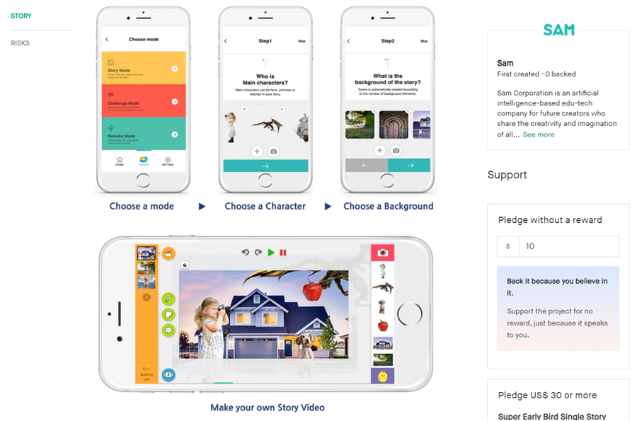 LOS ANGELES, CA, December 11, 2020 /24-7PressRelease/ -- With the support from Digital Contents Hub Activation Project organized by the Ministry of Science and ICT and National IT Industry Promotion Agency and operated by Next Generation Convergence Contents Industry Association, Sam Corporation (CEO Park Jae-beom) launched the Story Creator funding campaign (http://kck.st/33cM1yi) on the global crowdfunding platform Kickstarter on Nov. 24 (US time).