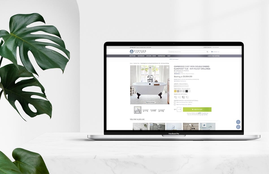 The fresh new design features an easy to navigate top navigation, displaying the categories customers are most interested in, so they don't have to spend extra time searching. Whether you're looking for a clawfoot tub or a farmhouse sink, each category page has a left navigation with filtering capabilities designed specifically for the category. The new customer service section has everything a customer needs in one place including order tracking, information about shipping, how to contact Vintage Tub & Bath, and much more.