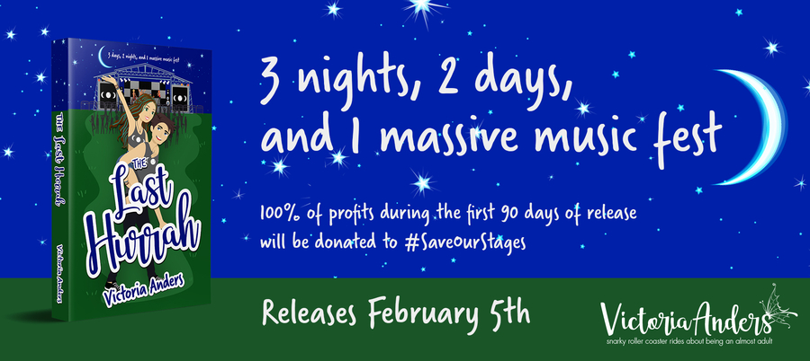 Author Victoria Anders will donate 100% of the profits for the first 90-days of release for the novella The Last Hurrah to the NIVA Emergency Relief fund to help #SaveOurStages. "Every little bit helps, and I want to do my part," said Victoria, a young adult author. "I'm a huge music lover, and I've spent tons of time enjoying live music. I can't imagine the world being without it."