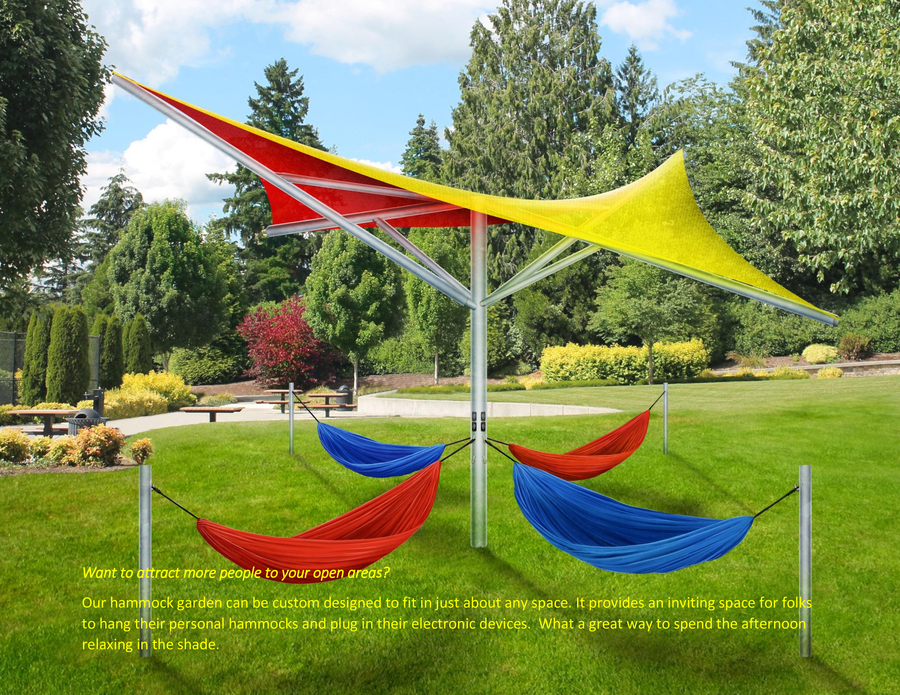 The company's basic model is the Grasshopper that is designed to bring clean, green energy to any location without connection to the grid. The small footprint stand is self-sustaining and comes optional with security camera monitoring, custom colors, and WiFi capabilities, among others. The larger Solis model has a stylish sitting bench with two chargers in the armrests that can be finished to match the décor of the surrounding environment. The Apollo series has both USB and AC power connections with seating for four that can be customized to a client's color requirements. The largest models in the Helios line can be configured with hammocks or an 8-person table with a shade structure and standard lighting.