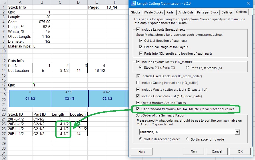 After several months of developing and testing, Optimalon Software has released version 8.2 of its optimization add-in 1DCutX for Microsoft Excel, which provides an option to switch from an exact fraction to standard and back.