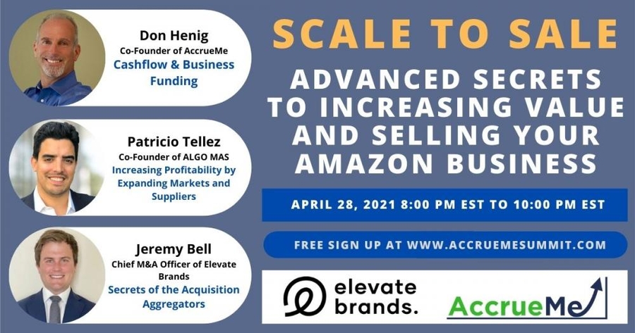 PEARL RIVER, NY, April 27, 2021 /24-7PressRelease/ -- Today, AccrueMe®, LLC the leading business-friendly funding solution for Amazon Sellers, announced it will host its first-ever Scale To Sale Summit for 3rd party Amazon Sellers on April 28th, 2021 at 8 PM Eastern Time.