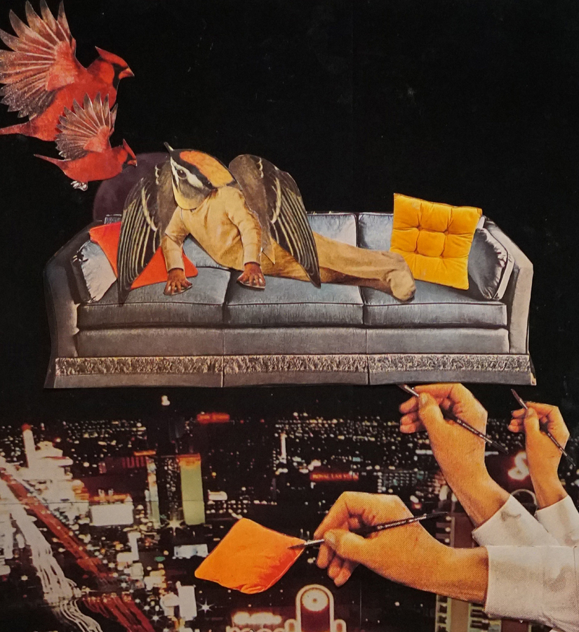 Kendra Morris recently released Sleep Flight, a spellbinding new piece created specifically for the World Collage Day show which combines collage animation and music. 10 exclusive non-fungible tokens (NFTs) of the artwork were created, which include a high-definition version of the music video and a music file of Morris's song of the same name. No other versions of this song will ever be released, as it is solely available through the purchase of the NFT. The physical Sleep Flight artwork - one of the highlights of the exhibit - sold within minutes of the NFTs being promoted on OpenSea.