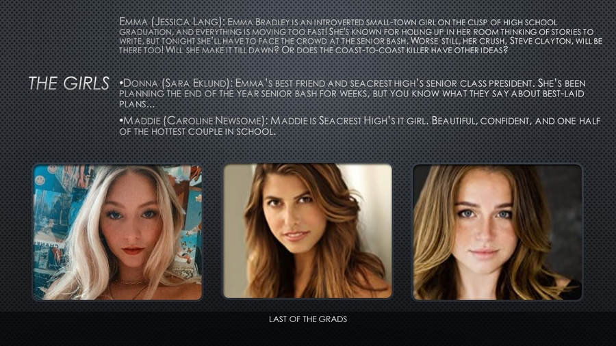 "We always pictured the high school in Last of the Grads as Seacrest," expressed Collin Kliewe. "It's such a uniquely pretty campus, and we both went there, so that's the experience we had growing up." Jay Jenkins, stated, "These were the hallways we imagined while we were writing the script. We'd be setting up for a big action scene with the crew and sometimes i'd just think to myself 'hey, that's where the boys and I used to eat lunch!', having the opportunity to film there was so surreal." Not allowing the pandemic of the last year to slow them down, all pre-cautions were taken, and some minor slow downs happened everything is in place for a May 14th premiere.