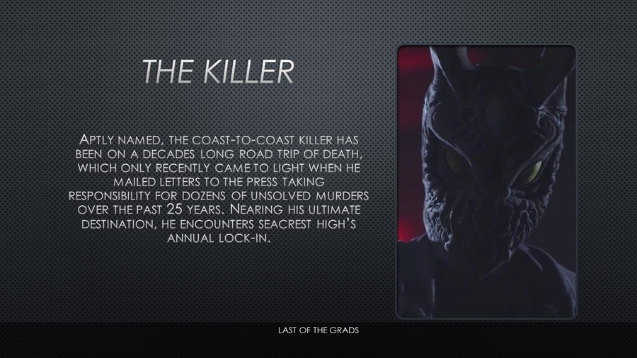 Synopsis: A class of graduating high school seniors, standing at the crossroads of their lives, celebrate their last night together at the annual school lock-in. They never could have guessed that they are about to encounter the harbinger of death, the legendary 'Coast to Coast Killer'.