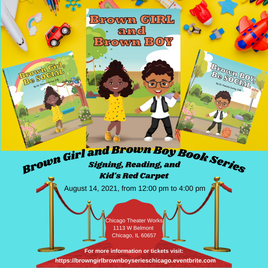 CHICAGO, IL, July 06, 2021 /24-7PressRelease/ -- Dr. Pamela Gurley will host a book reading and Kid's Red Carpet event to celebrate her new children's series, Brown GIRL and Brown BOY. The event will be on August 14, 2021 and held at The Chicago Theater Works at 1113 W. Belmont in Chicago, IL. Doors to the event open at 12:00 pm and tickets for general admission starts at five dollars. A red carpet will welcome attendees and gift bags will be provided for those who purchase a copy of her books. There will be music performances and book readings by local artists King Vell And The GMC. Food trucks, 360 photobooth, nonalcoholic beverages, and more will also be provided for event goers. VIP attendees can enjoy a private room with champagne made available. Dr. Pamela Gurley will be reading her first two installments, Brown GIRL Be Social and Brown BOY Be Social to introduce party guests to the dynamic duo of her series. Both books are available for purchase online at Barnes & Noble, Amazon, and other online stores worldwide.