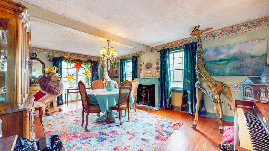 The 7.4-acres property has three large structures and several outbuildings. The main residence is a 3,458-square-foot, 4-bedroom, 2.5-bath, Cape Cod style home, decorated in a style befitting an animal sanctuary. Across from that sits a 1,680-square-foot Veterinary Hospital with reception area, surgery center, examination rooms, break room, kitchen and parking.