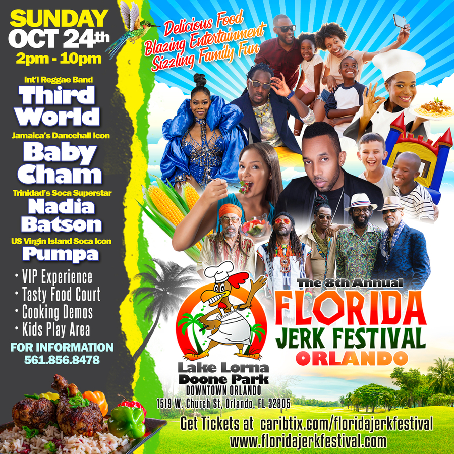 ORLANDO, FL, October 07, 2021 /24-7PressRelease/ -- The 8th Annual Florida Jerk Festival: Orlando Edition, one of Florida's premier Jerk foodie events, will be taking over Central Florida on Sunday, October 24, 2021 from 2PM – 10PM at Lake Lorna Doone Park located at 1519 West Church Street.