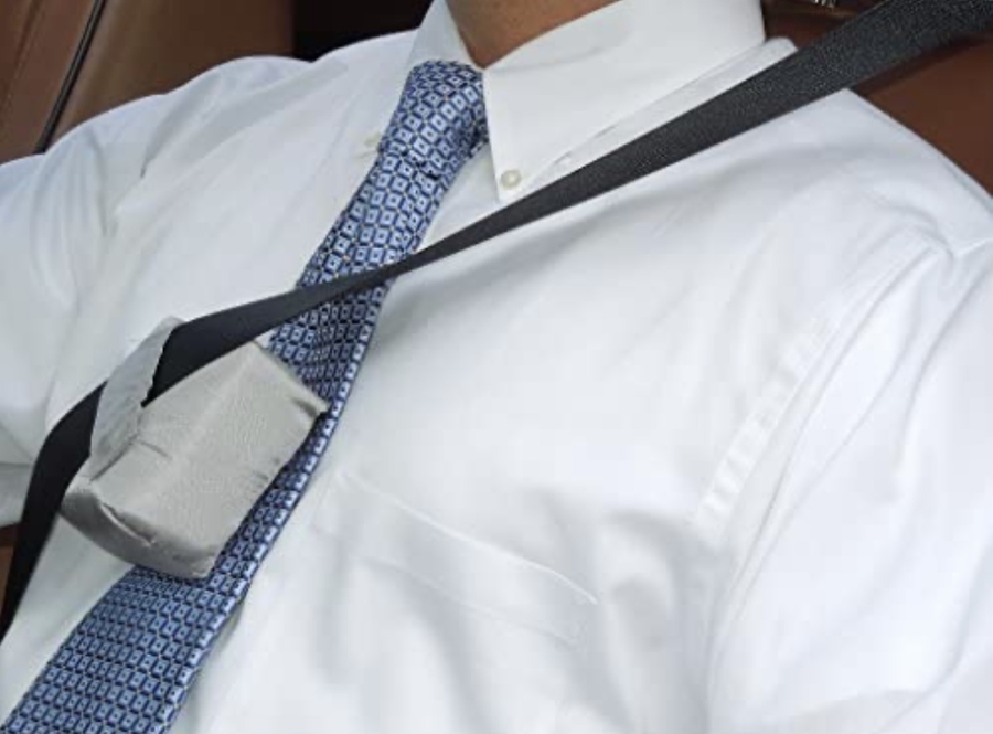 Never look disheveled when you get to work again! The Beltevator reduces wrinkling apparel and fraying of neck ties. It does so by allowing the soft fabric to sit on your clothing while the seat belt hovers off your chest and neck.