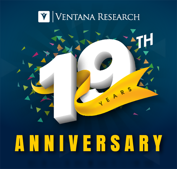 Tweet this: News: @VentanaResearch celebrates its 19th anniversary. Learn more here: https://bit.ly/3bVi9uq #business #IT #techvendor #analytics #CX #data #digitalbusiness #digitaltechnology #HCM #marketing #finance #sales #operations #supplychain #advisoryfirm #marketresearch