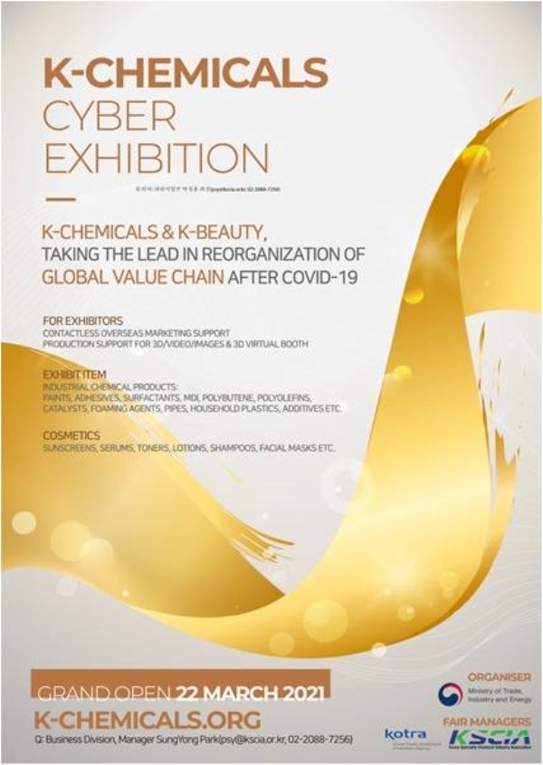 LOS ANGELES, CA, December 23, 2021 /24-7PressRelease/ -- K-Chemistry Cyber Exhibition, an international online exhibition in the field of chemistry and beauty, hosted Season II in the second half of 2021. K-Chemicals is hosted by the Ministry of Trade, Industry, and Energy, organized by the Korea Trade Investment Promotion Agency (KOTRA) and the Korea Precision and Chemical Industry Promotion Association (KSCIA), and has been operating permanently since its opening on March 22nd in the first half of this year.