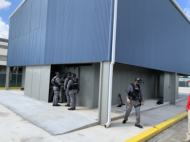 The Hialeah shoot house is designed for 360-degree, live-fire tactical training. It has been used for instructor and drone operation training. SWAT officer training begins in January. In addition to live-fire drills, the facility will be used for K9 and drone pilot exercises.
