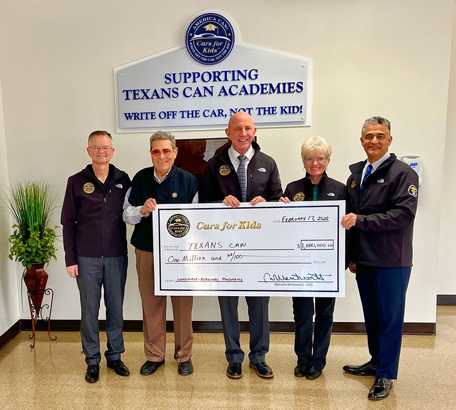 DALLAS, TX, March 02, 2022 /24-7PressRelease/ -- Cars for Kids has reiterated their commitment to giving kids an opportunity to build a better future as the nonprofit recently donated $1m to Texans Can Academies. The goal is to help at-risk high school kids find jobs as well as seek post-high school work training programs, a cause the nonprofit has championed for more than three decades.