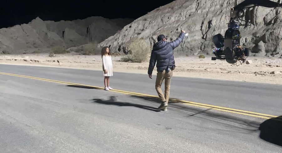 During this breathtaking 60-second version of the ad spot, we watch a family driving toward the moon in their Lincoln Navigator luxury SUV. Then about halfway through the ad, the father played by Dominic Daniel, takes his hands off the wheel displaying the available ActiveGlide Technology. Just before we see a young curly haired girl, Naiya Singh Padilla, standing in the reflected lunar light as she takes in a close up view of the moon. She becomes almost breathless and feels transported right to the Moon, walking on its surface. As it is later revealed, she was actually watching a movie about the Moon on the screen she has in front of her and listening to "Walking on the Moon."