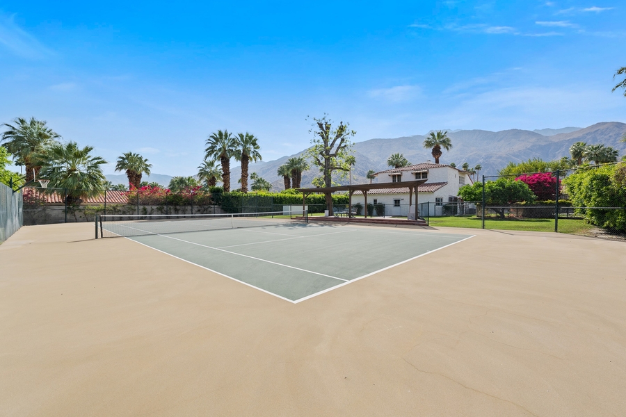 Situated on over an acre on a street-to-street lot, the manicured park-like grounds are gated, walled and hedged for ultimate privacy. An entertainer's dream, the property features a regulation size north/south tennis court, pool, spa, BBQ grilling station, and covered patio with outdoor fireplace, hidden wet bar and misting system. There is plenty of parking with a circular driveway, porte-cochere and two-car garage. The basement can be used for storage or a possible wine cellar. Ideal for vacation rental or special events, this central location is a short walk to popular restaurants, boutiques, the Uptown Design District, Desert Regional Medical Center and Ruth Hardy Park. Truly an extraordinary opportunity to acquire one of Palm Springs' most significant and beautiful estates. Offered at $5,595,000.