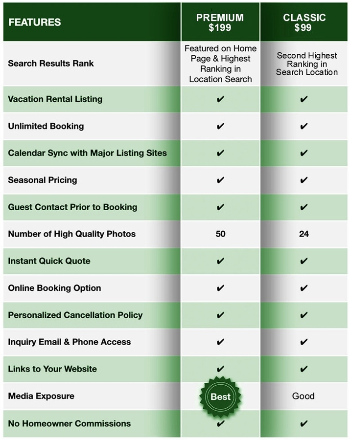Once again, I am dedicated to making sure there are No Booking Fees and No Homeowner Commissions. Just a flat yearly subscription rate."