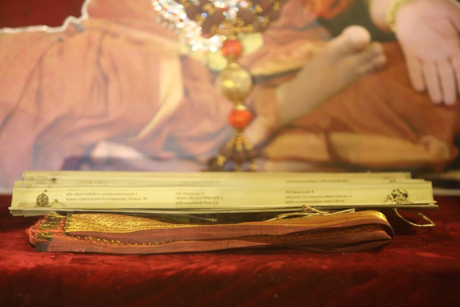 The palm leaf manuscripts of Nithyananda Yoga PaddhattiSM with all the original Sanskrit verses from the scriptures forming the Dwithiya Vinyaasa KramaSM and Tritiya Vinyaasa KramaSM were offered at the feet of The SPH, after which the grand finale of today's Nithyananda Yoga Festival 2022, on the International Day of Yoga, included the performance of Dwitiya Vinyaasa Krama by the disciples of The SPH, in Adi Kailasa Nithyananda Sarvajnapeetham in Bangalore, India, attempting for the world record of 308 yoga asanas ever performed within one hour.
