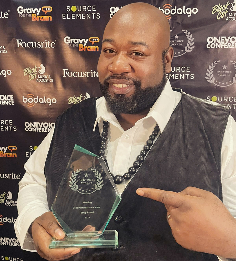 Elroy 'Spoonface' Powell is an established talent in the voice acting industry and has leant his honed skill set to a diverse range of artistic endeavours. From the early days of his career his ability to use the gift of his voice has been evident and this has led him to achieve a number of career milestones. One such milestone being the best male voice in gaming this year. More than just an artist, Spoon is focused on helping people better themselves through the practice of mindfulness and engaging with positive affirmations.