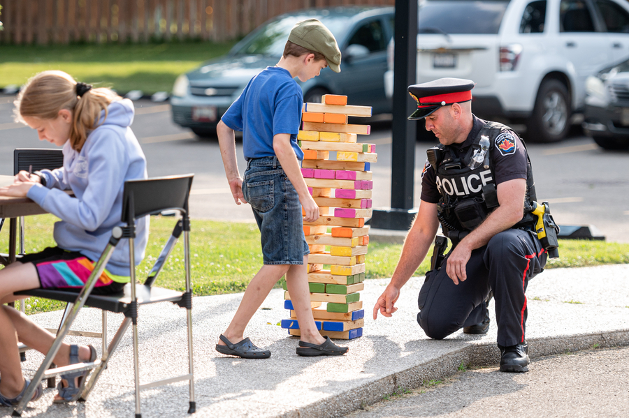 Many people had come early and were ready for food as soon as we were able to serve them. Among the first to arrive were an officer and cadet from the local OPP detachment. They were able to interact with the community at the event. They also gave special stickers to many children.