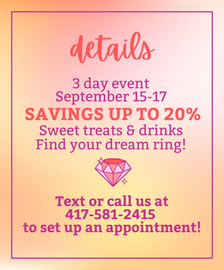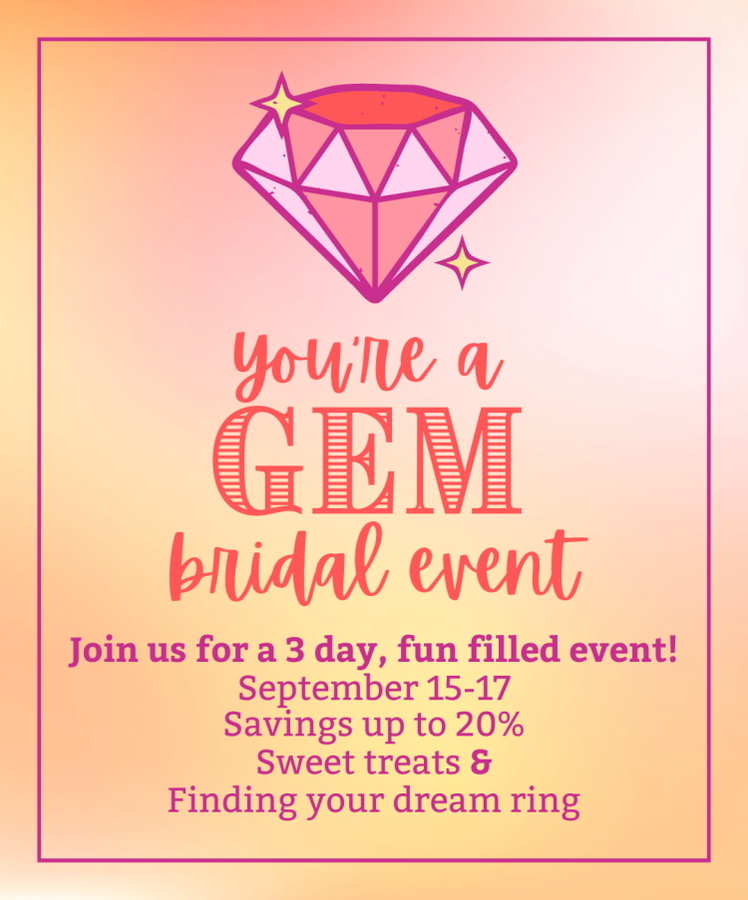 On the 15th, 16th, and 17th of September, Mitchum Jewelers is making an incredible offer. At their jewelry store on West Jackson Street, they're hosting the You're a Gem Bridal Event. Guests can receive peerless savings – up to 20% – on bridal jewelry.