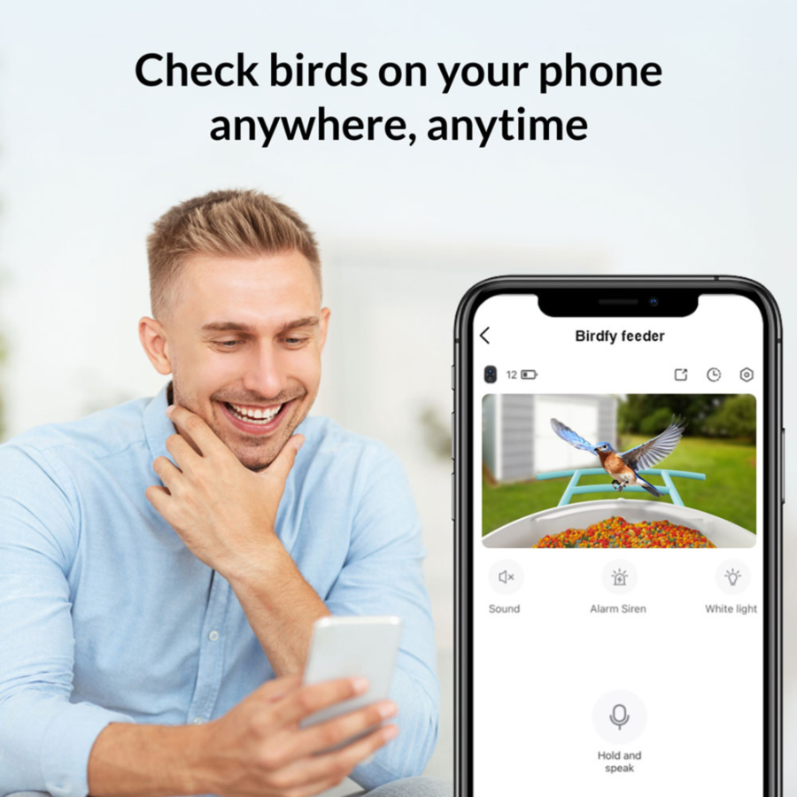 Your phone will receive immediate updates from the Netuve app when Birdfy detects non-bird animals, let's say squirrels, white light will keep them away from stealing bird seeds.
