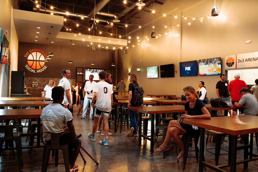 The Basketball Social House welcomes players to an impressive 21,000 sq. ft. facility that features a technology-enabled Full 5x5 Court with Training Space, Custom 3x3 Arena, and Private Basketball Suites, plus gourmet menu items, top-shelf drinks, music and TVs, and stunning lounge and game areas.
