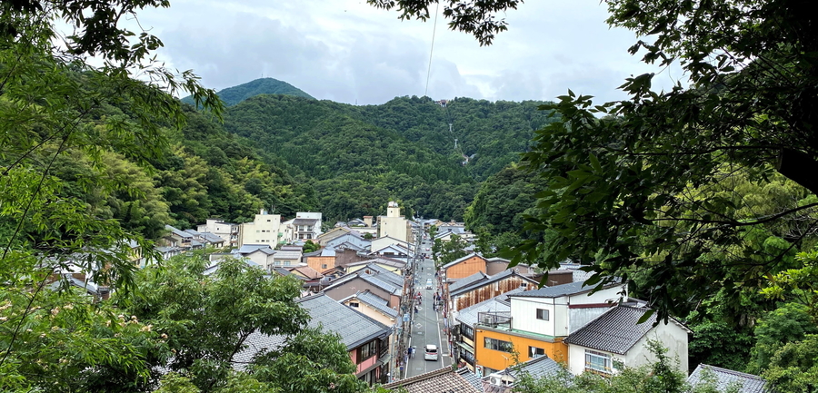 Mt. Daishi presents a hiking course through the lush forest in the back of town with a dense tree canopy and little stone guardians. Visitors can hike 15 minutes up halfway to Onsenji Temple, or 45 minutes all the way to the top of the mountain. The hot springs in town below provide a great place to rest afterwards.