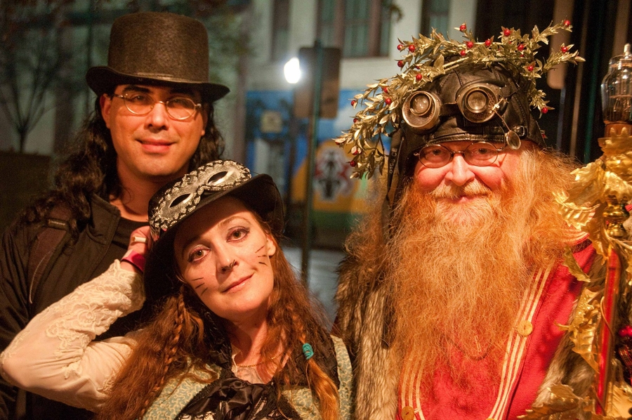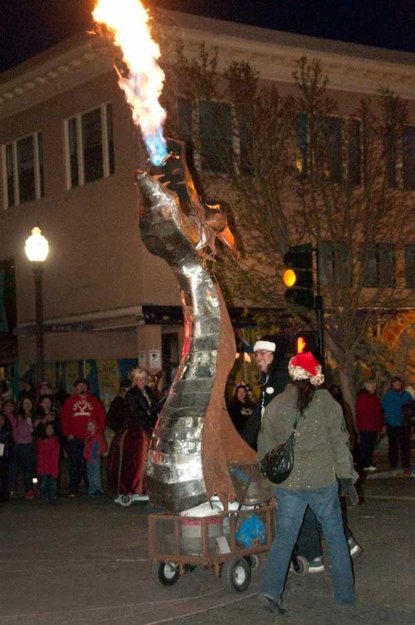 There are children dancing groups, Mexican dancers in full regal, African Drummers, Marching Bands, Maritime Cadets, Buffalo Riders, Wonderland Floats and many children activities from train rides around the lighted 50-Foot Christmas Tree as well as interactive activities with award winning Burning Man creations and a Jurassic Robotic Park.