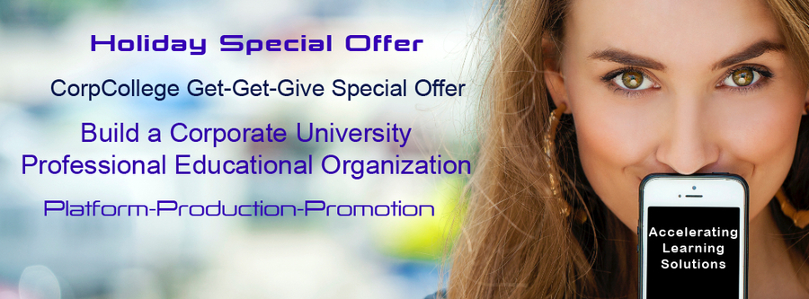 Content Development or Corporate University Professional Services – for content design, development and delivery along with corporate university organization services are provided on a custom proposal basis. Special services and rates are available for customers. Click on image for more.