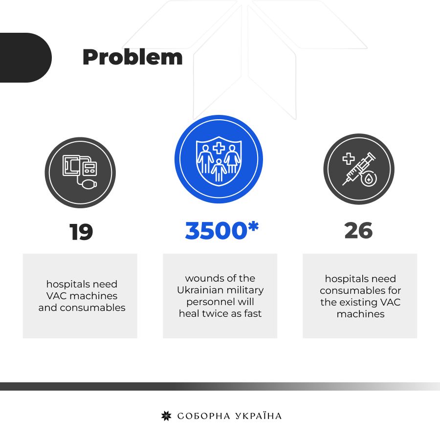 Ukrainian doctors ask for help with vacuum assisted closure devices (VAC) that heal wounds faster. Now medical specialists urgently need VACs and consumables in 31 medical institution of Ukraine [1].