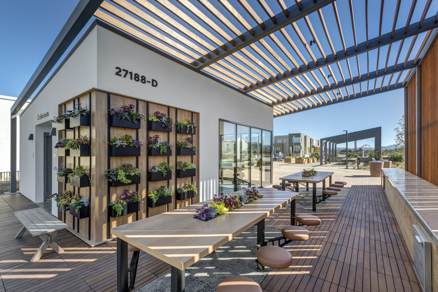 East of the park's core, a shaded paseo opens to pathways that weave pedestrian and bike trails with Neighborhood Electric Vehicle routes, discovery points and scenic backdrops. Encouraging residents to skip the car and enjoy the outdoors, these routes access pocket parks, playgrounds, picnic spots and neighboring trails.