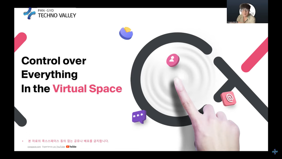 Kim Ho-yeon, the CEO of CoxSpace participated in the video conference. The company was founded by him after working as an Intel program manager back in 2015. CEO Kim Ho-yeon has won a prize for an innovative idea at a human interface device contest when working for Intel, and predicted that human interfaces will be used by many people in metaverse (virtual reality) in the future.