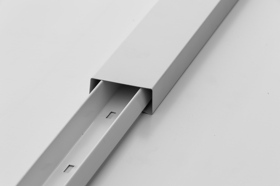 The panels overlap and are secured with a screwed-on seam strip. The batten snaps over the joint to conceal the seam and all hardware.
