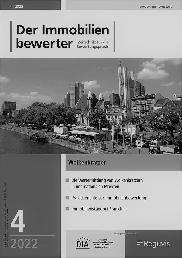 In the current issue 6/2022 of the professional journal GuG (Grundstücksmarkt und Grundstückswert), Ronny Kazyska deals with the special property skyscrapers with a focus on the German market in an article of several pages. It describes the reasons local city planners should pay more attention to the possible development of high-rise buildings and skyscrapers in urban centers in the future. The current stock of towers in Germany is listed, and new developments are named. The opportunities and risks resp. the advantages and disadvantages of skyscraper investments are analyzed. The specifics of the land value determination of skyscrapers with recommendations are shown. The total lifetimes of skyscrapers are viewed from a differentiated perspective from an economic and technical point of view. Recommendations are given for the individual management costs, which include administration and maintenance costs as well as the risk of loss of rent. The special characteristics of the operating costs are explained. A modernization risk is discussed. The rent heights, purchase prices, and multipliers of German skyscrapers are presented. The essay ends with an exemplary valuation of a skyscraper in the international financial metropolis Frankfurt am Main.