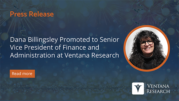 Share on Social: News: @VentanaResearch promotes Dana Billingsley to SVP of Finance & Administration. Read: https://bit.ly/3HFdKw9 #VR #AnalystFirm #MarketResearch