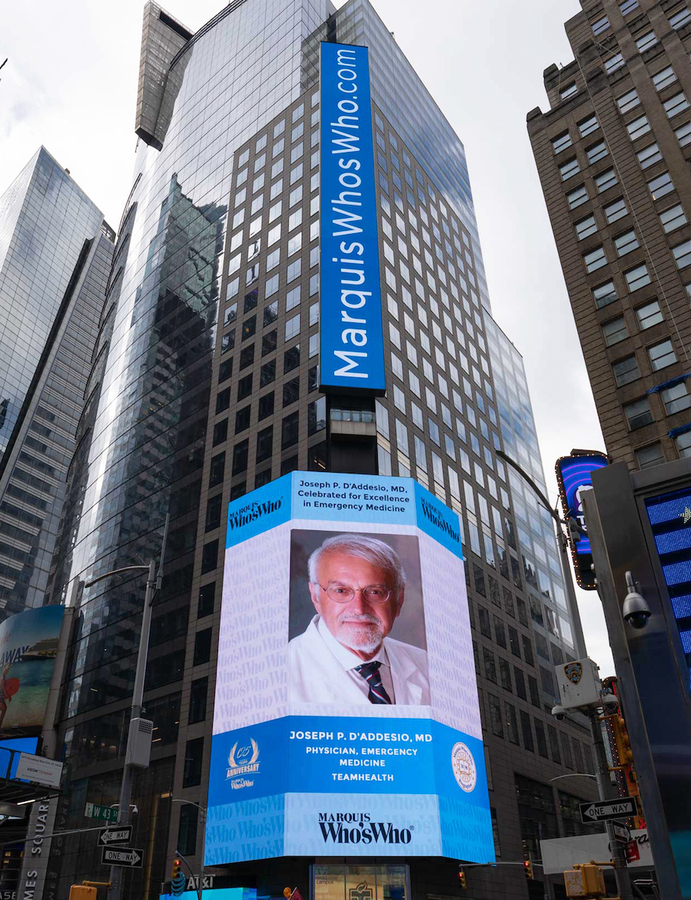 KINGWOOD, TX, March 07, 2023 /24-7PressRelease/ -- Joseph P. D'Addesio, MD, is a distinguished biographee of Marquis Who's Who. As in all Marquis Who's Who biographical volumes, individuals profiled are chosen from among a pool of the most prominent professionals and are selected on the basis of current reference value. Factors such as position, noteworthy accomplishments, visibility, and prominence in a field are all taken into account during the selection process.