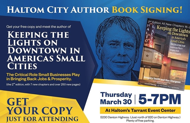 HALTOM CITY, TX, March 13, 2023 /24-7PressRelease/ -- Ron Sturgeon has some pretty good ideas about how to bring back Haltom City as a booming business locale. That's why he's sharing complimentary copies of his newly released second edition of "Keeping the Lights on Downtown in America's Small Cities" during a special book signing. Sign up via Eventbrite for this free event, which will be held 5-7 p.m. March 30 at Tarrant Events Center in Haltom City.