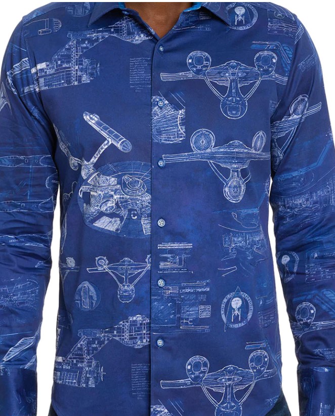 The Star Trek X RG collection shirts are stylish, comfortable, feature iconic designs, including the USS Enterprise, Klingon insignia, and more, all fused with Robert Graham's signature details.