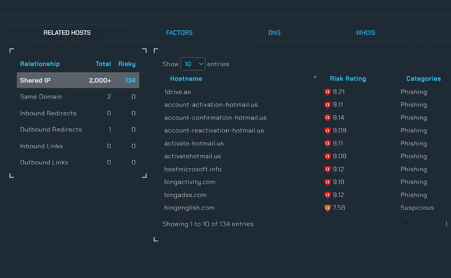 A comprehensive suite of additional signals including HTTP responses, SSL certificates, DNS, WHOIS and more