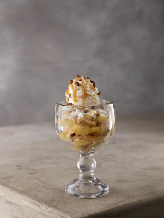 · Apple Pie Sundae – The big finish: warm apple pie, topped with vanilla ice cream, whipped cream, caramel drizzle and candied pecans. ($9.99)