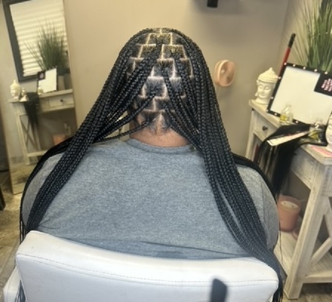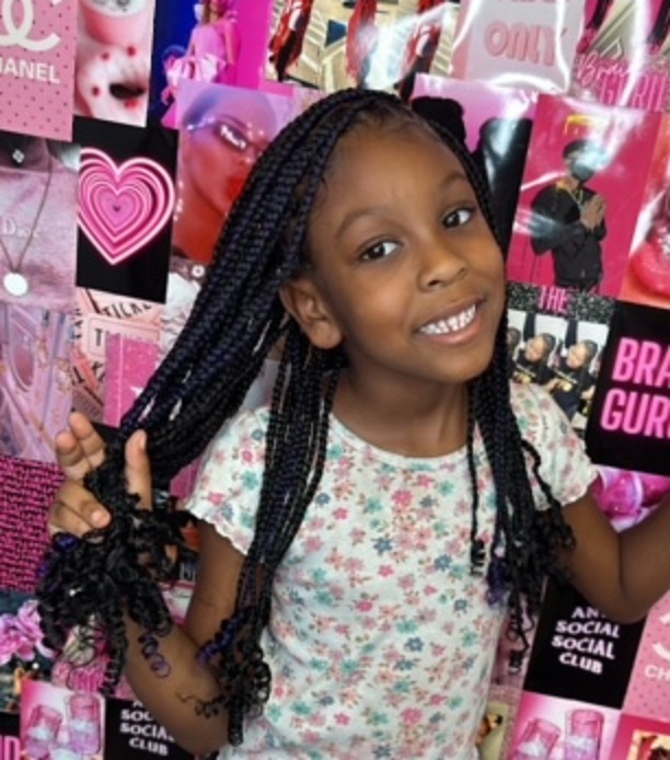 "I specialize in kids' braids," says Marcedes. "I'm a great braider for adults too – I do all types of braids, but I am probably best known for knotless braids." Also well known for her neatness and her precision braiding work, Braid Guru Marcedes describes herself as client focused and professional.