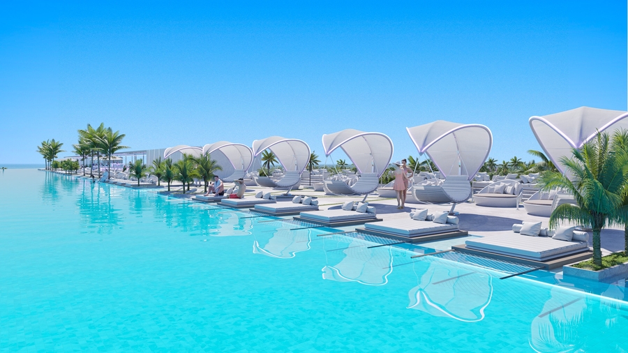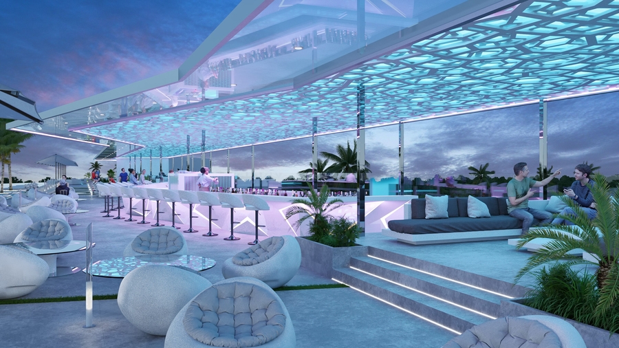 The complex's most striking feature is definitely its exciting rooftop lounge area with the largest pool in the world spanning 190m in length (just for comparison, the roof-top pool of the Marina Bay Sands hotel is 146m in length). This is a unique space where you can relax and unwind on comfortable sun loungers by the impressive pool, and in the evening enjoy the sunset in a stylish lounge bar with a relaxed at-mosphere and delicious cocktails. The uniqueness and stylish photogenic design of the complex's rooftop will make it a new icon of attraction across the district and a hotspot for popular bloggers.